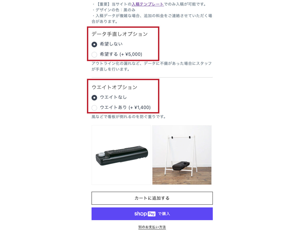 「データ手直しオプション」や「ウエイトオプション」が必要な場合はご選択ください。